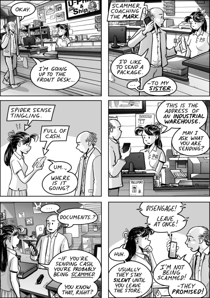 In some of the more depressing cases, the victim absolutely refuses to believe they are being scammed and will go through hell and high water to send their life savings to thieves in foreign countries. Other times, there’s a win, resulting in grateful customers, sometimes in tears, thanking the staff for saving them from being ripped off by organized sociopaths.