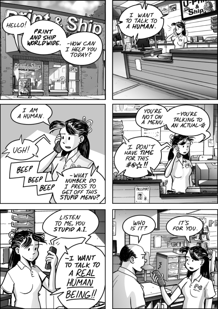 However, apparently if you’re frustrated and committed to a (rude) diagnosis, backing up to say, “Whups! I’m sorry. I thought you were a robot!”, is also too difficult for some customers.