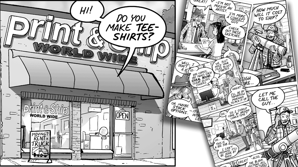 Welcome! Here you will find lighthearted stories about everyday interactions in the buzzing business of retail printing and shipping! Site specific updates coming soon. (There are lots of stories to tell!) Read the comics! Cheers! -Mark